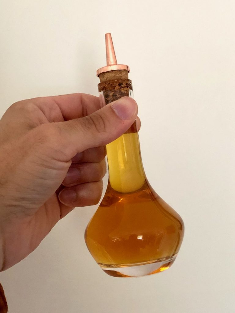 I let it sit a bit longer than Brad Parsons recommends, but it turned out great. I ran it through coffee filters to filter out the sediment, then bottled it in my Cocktail Kingdom dasher for home use and in some 1oz eye dropper bottles to give to friends.